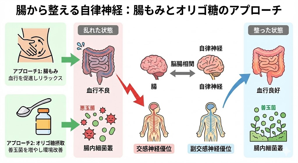 ① 腸から自律神経を整える!「腸もみ」「長沢オリゴ」